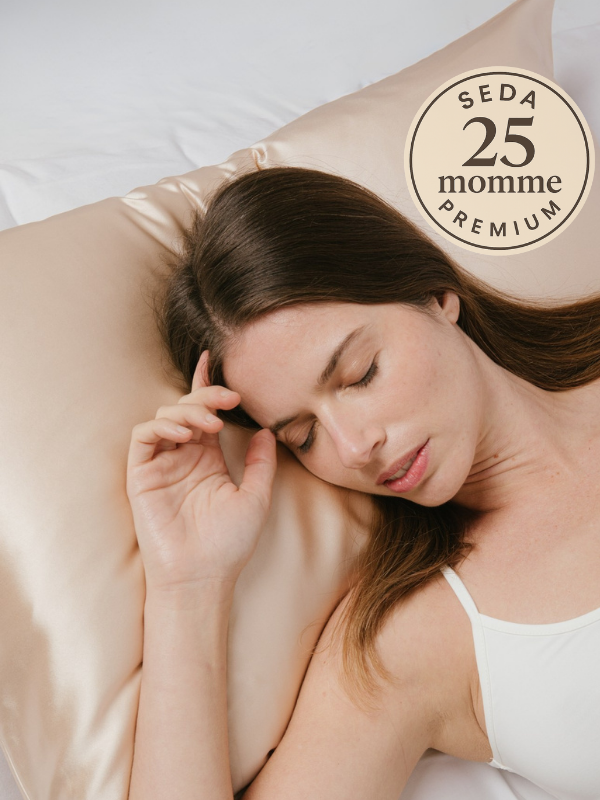 La seda reduce la fricción entre la piel y la almohada. La piel se desliza en lugar de arrugarse, ayudando a prevenir la aparición de líneas finas que con el tiempo, pueden convertirse en arrugas.
